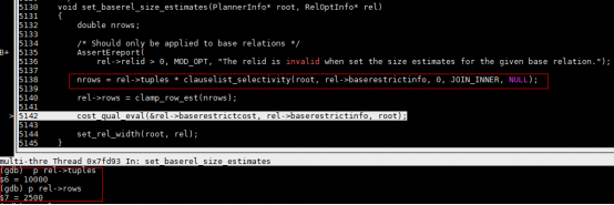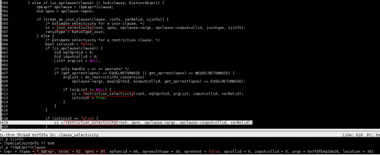 函数调用关系:standard_planner-> subquery_planner-> grouping_planner-> query_planner-> make_one_rel-> set_base_rel_sizes-> set_rel_size-> set_plain_rel_size-> set_baserel_size_estimates-> clauselist_selectivity-> clause_selectivity-> restriction_selectivity-> OidFunctionCall4Coll-> eqsel->var_eq_const