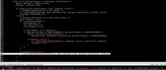 这里重点分析基表的简单查询——基于OpExpr类型的选择率计算,处理函数在clause_selectivity。如果是过滤条件就调用restriction_selectivity函数来获得OpExpr表达式的选择率,如果是连接条件则调用join_selectivity函数来获得选择率。