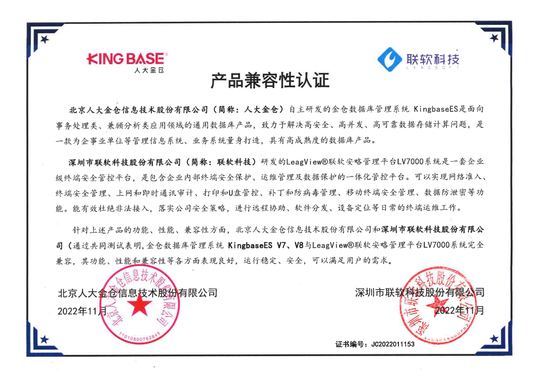 目前,人大金仓和联软科技在产品适配与融合、生态建设等方面已全面深入合作,完成了核心产品兼容性互认证工作。同时,联软科技也加入了由人大金仓牵头发起的金兰组织,与300余家成员单位企业一道资源优势互补,繁荣我国信创产业创新生态。