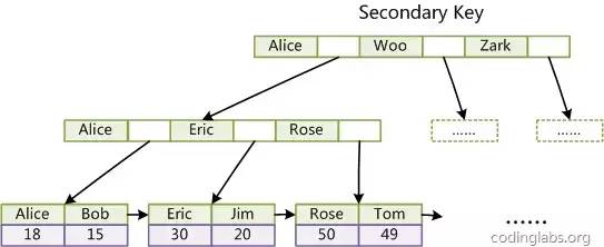 这里以英文字符的ASCII码作为比较准则。聚集索引这种实现方式使得按主键的搜索十分高效,但是辅助索引搜索需要检索两遍索引:首先检索辅助索引获得主键,然后用主键到主索引中检索获得记录。