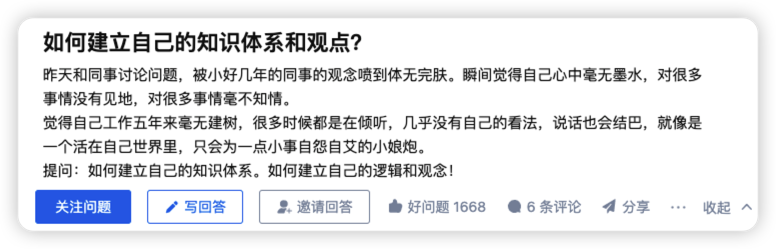 前几天我在知乎看到一个问题:如何建立自己的知识体系和观点?[1]