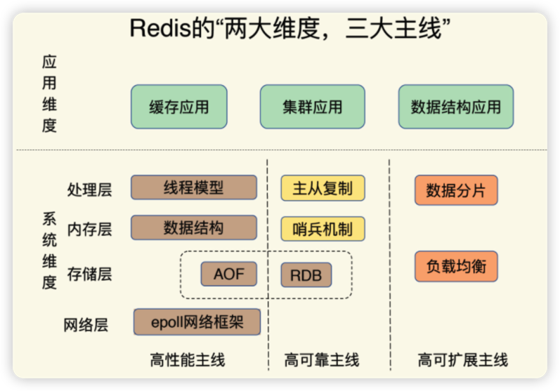 我来总结一下本文的内容。Redis 系统的高可用,具体可以通过两个方面来理解:一是服务少中断,二是数据少丢失。我整理的知识消化链路如下。