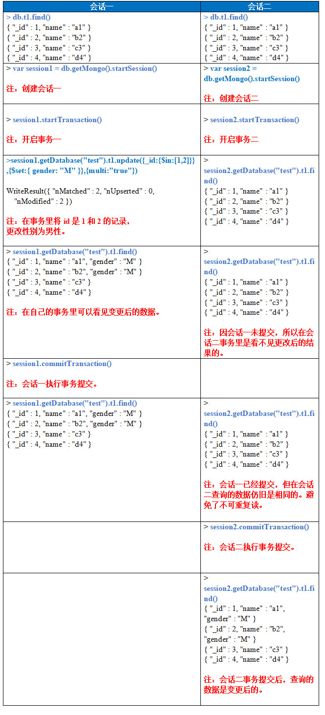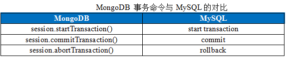 Mongo Shell里引入了三个用于创建,提交和终止事务的新命令: