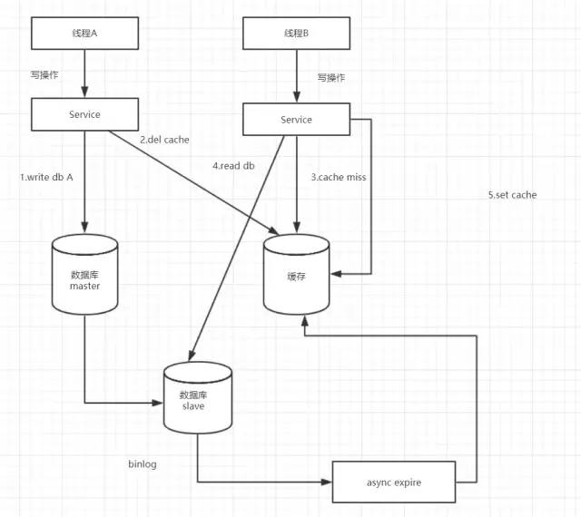 主从DB问题:因为主从DB同步存在同时延时时间如果删除缓存之后,数据同步到备库之前已经有请求过来时,会从备库中读到脏数据,如何解决呢?解决方案如下流程图: