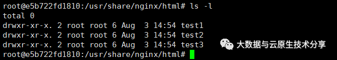 可以看到,bind mounts的方式会隐藏掉被挂载目录里面的初始内容,这里是/usr/share/nginx/html目录下的内容被隐藏掉了,因此我们看不到。