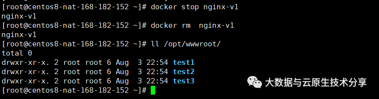 通过图上所示,挂载目录里面的文件仍然还在,不会随着容器的结束而消失,从而实现数据持久化。