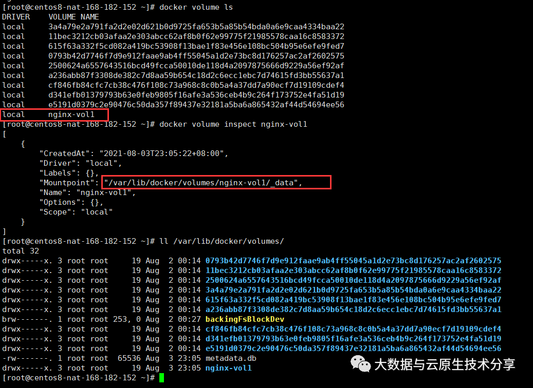 -v指定具体路径,如果不指定,那就在默认路径下/var/lib/docker/volumes/目录下随机产生一个挂载目录