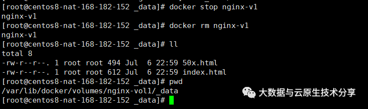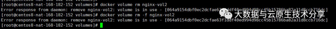 注意:docker规定,没有容器正在使用数据卷后才允许删除该数据卷