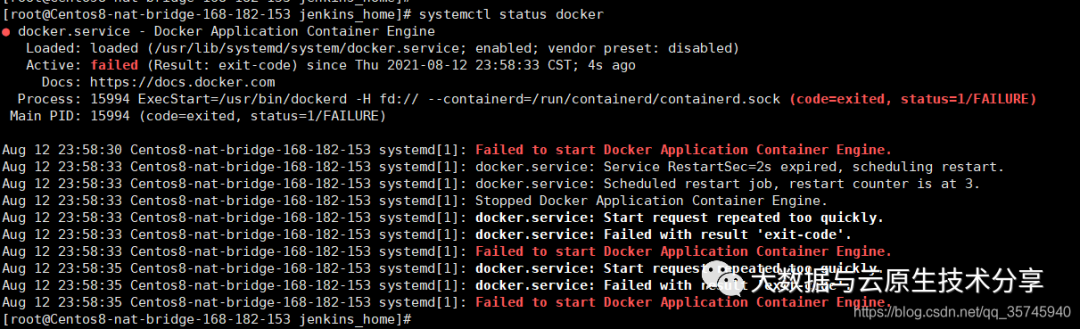 注意:就是daemon.json文件中采用tab缩进,不能通过空格缩进,要不然重启会出现以下报错: