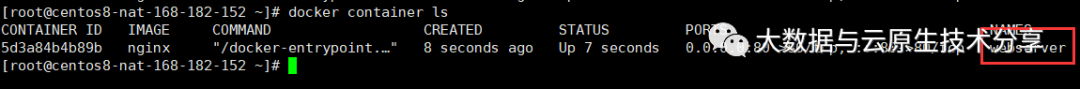 port Lookup the public-facing port which is NAT-ed to PRIVATE_PORT # 查看映射端口对应的容器内部源端口