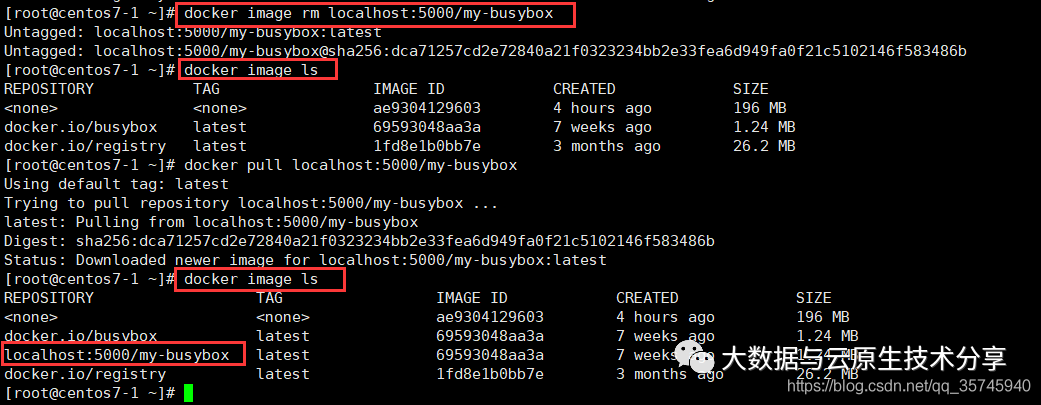 【验证】删除本地的镜像,再拉取仓库的镜像