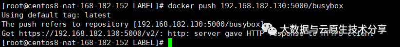 但是这种registry只是本地能使用,我们找另外一台主机192.168.182.152往该registry中push镜像: