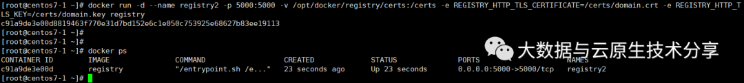 ocker run -d --name registry2 -p 5000:5000 -v /opt/docker/registry/certs:/certs -e REGISTRY_HTTP_TLS_CERTIFICATE=/certs/domain.crt -e REGISTRY_HTTP_TLS_KEY=/certs/domain.key registry