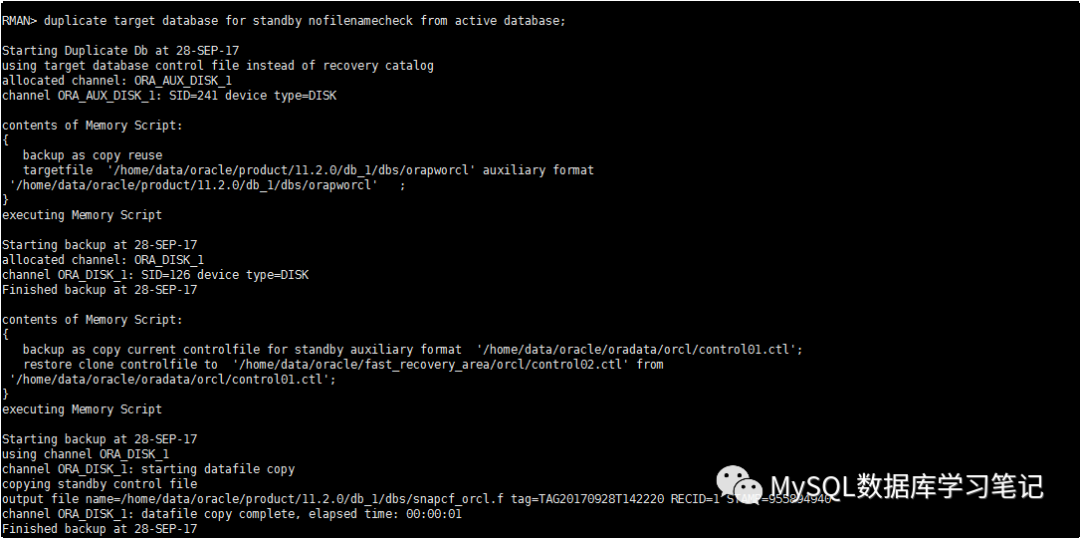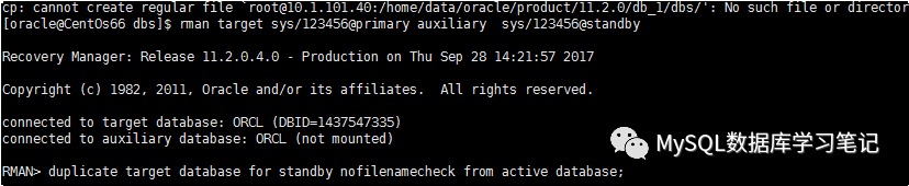3主库RMAN拷贝文件到备库时间比较长,主库可能需要在mount模式下拷贝,之前测试过在open模式下拷贝可能会出问题,备份库日志和主库不同步,备份库无法open