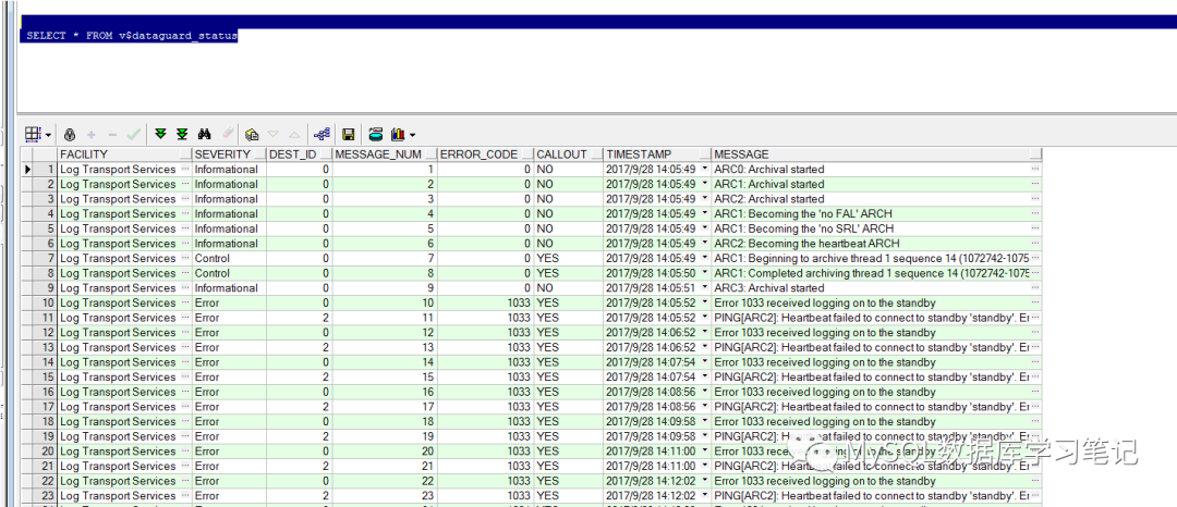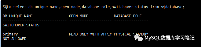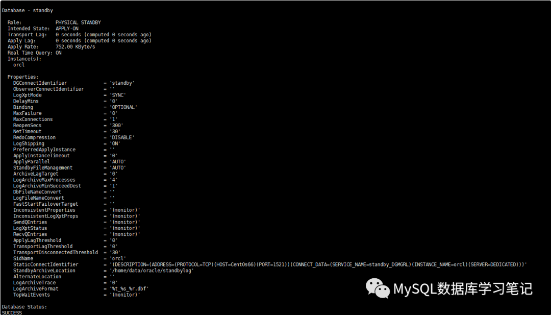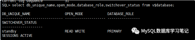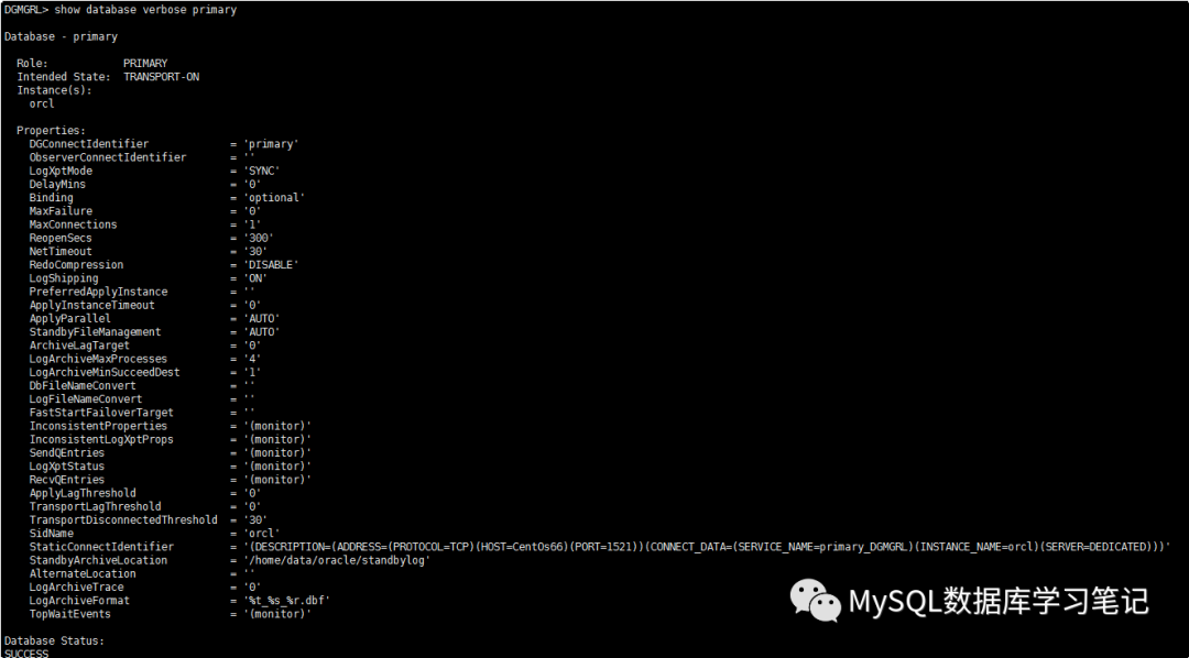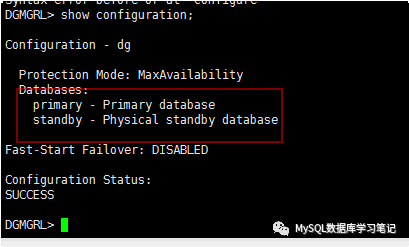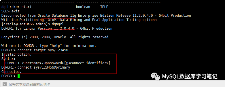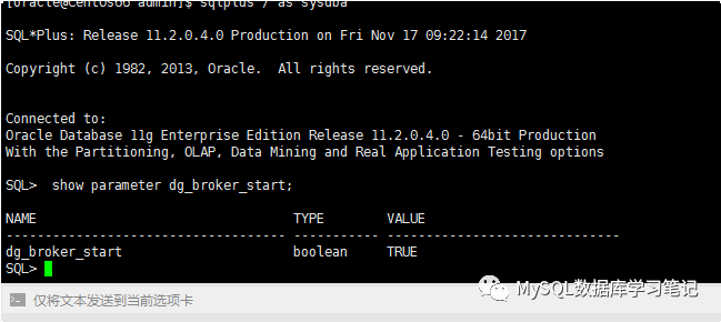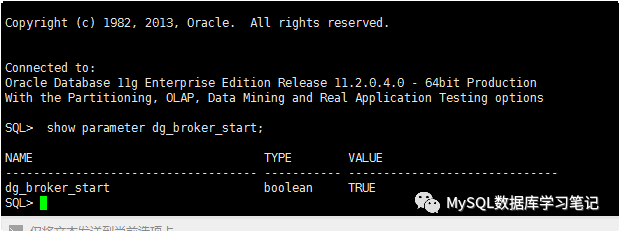 Primary :查看dg_broker_start参数,如果未开启,需要通过alter system set dg_broker_start=TRUE; 开启