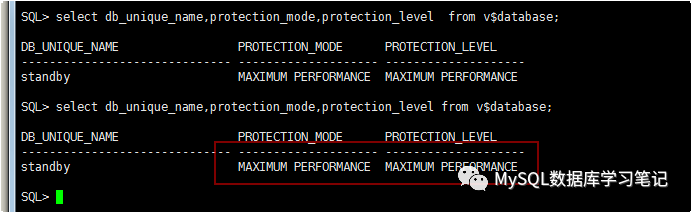 这个模式是缺省模式,他更加侧重对Primary Database的可用性不造成任何影响。