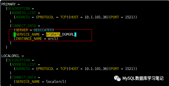 注意:需要添加GLOBAL_DBNAME参数,重启监听器,GLOBAL_DBNAME对应参数为db_unique_name_DGMGRL