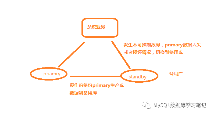 ORACLE DG采用夜间停机模式,新增一台ORACLE备用机,还原备用机数据到某个时间点,如果操作过程中主库损坏或者主库数据丢失等原因,业务全部切换到备用机子。