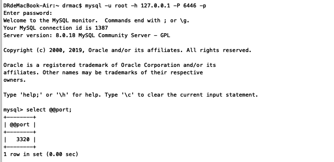 - Read/Only Connections: localhost:6447, Users/drmac/mysqlrouter/mysqlro.sock
