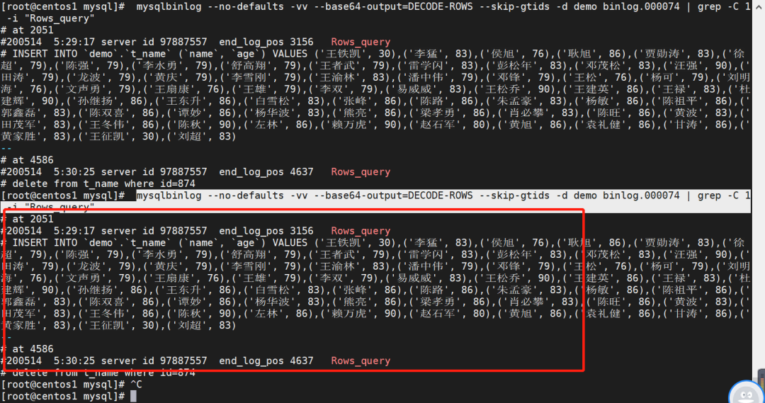 2.mysqlbinlog -vv参数 --base64-output=decode-rows 参数