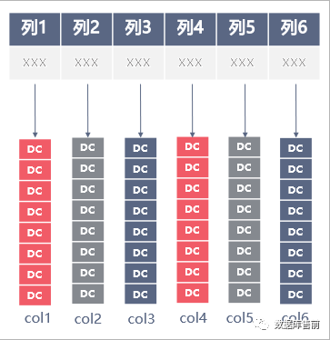 在列存储数据库中,每张逻辑数据表横向分成多个数据列,每个数据列纵向分成多个存储单元。