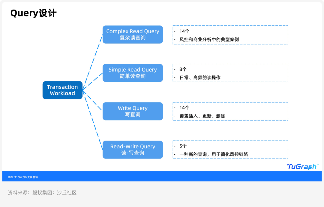 FinBench中设计了四类Query,包括14个复杂读查询、8个简单读查询、14个写查询和5个读-写查询。