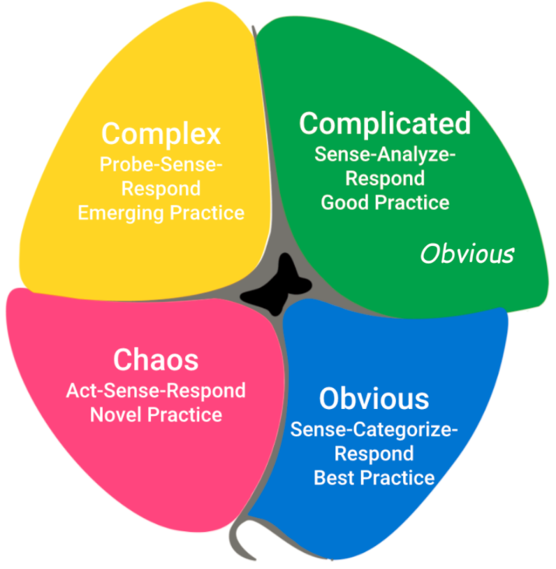 清晰问题都非常简单,你只需要按照久经验证的最佳实践方案或标准流程来解决问题即可。 繁杂问题需要借助一些专业知识和有用经验来进一步评估验证。 复杂问题是未知而突发的问题,你需要不断试验才能摸索出解决方案。 混沌问题需要采取快速行动来建立秩序,从而将它转化为其他几种类型的问题。