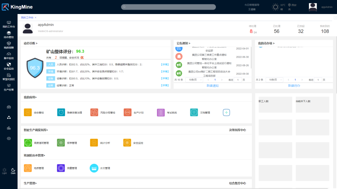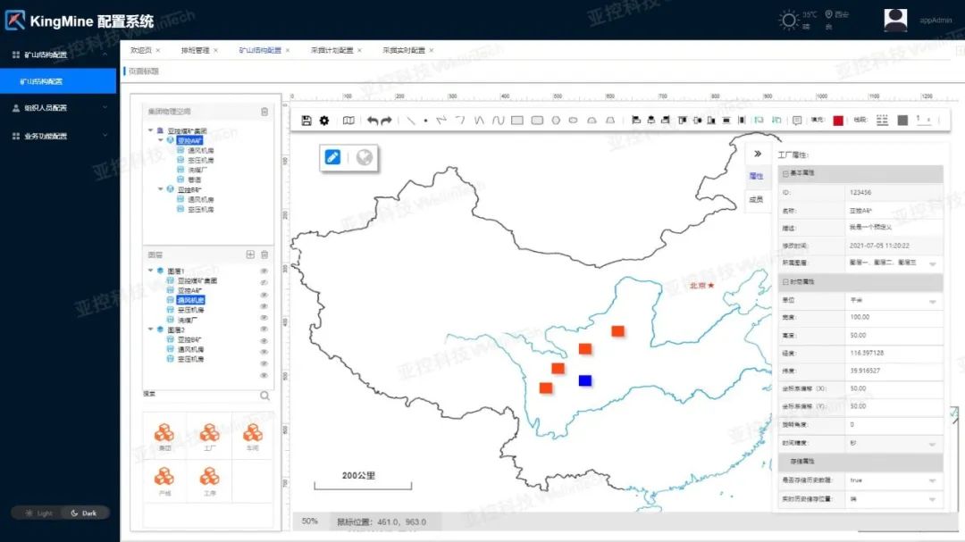 生产业务全组态:生产业务建模全组态,针对不同矿企的个性化生产流程与结构可配置。