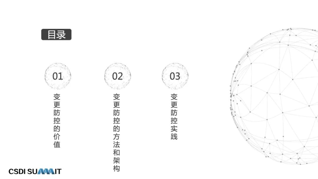 接下来我会从三个方面去讲:一是变更防控的价值和问题,第二部分是变更防控的方法和架构,以及在智能化变更防控里面的一些实践。