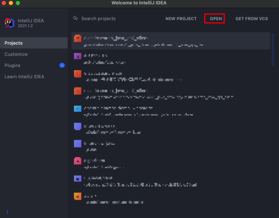 打开 IntelliJ IDEA 工具,点击 OPEN