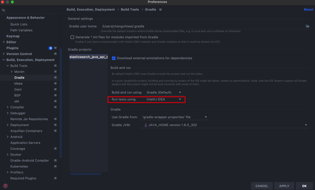 打开 IntelliJ IDEA 设置 -> Build, Execution, Deployment -> Build Tools -> Gradle,将 Run tests using 改为 IntelliJ IDEA