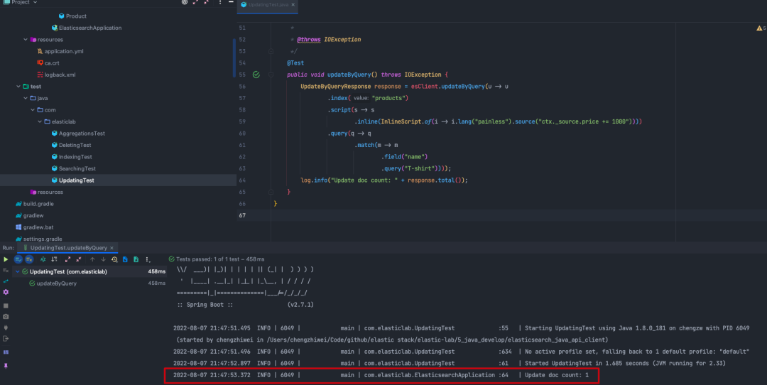 在 UpdatingTest.java[10] 文件中可以找到完整代码,点击 updateByQuery()