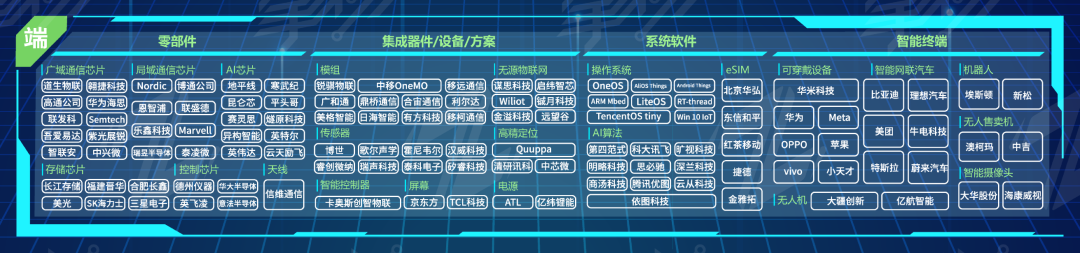 除此外,“端”侧内容还包括了对主要芯片企业、集成器件/设备企业、系统软件企业、智能终端企业的介绍,