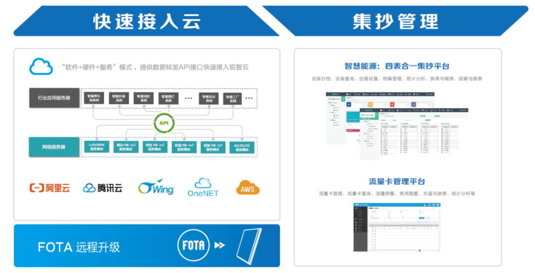 锐骐物联水电气热智能表计智能云模组及系统解决方案:支持多种无线传输(NB/LoRa/CAT.1/CAT.4),支持多种智能表计传感器(光电直读/超声波/霍尔/干簧管等),支持LoRa全球网络频段,支持Emtc,可适用于全球市场。超低功耗,高准确率,帮助客户快速接入云端系统。支持AT透传模式及Open CPU模式开发,可通过锐骐物联四表合一平台实现远程抄表、远程控制、异常监测、报警及异常处理等管理功能。