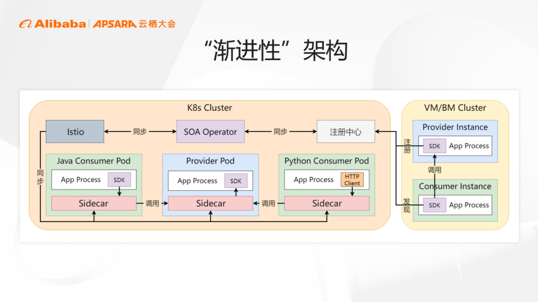 使用方面:K8s集群外的应用仍然使用过去的交互方式,通过SDK和注册中心进行通信。