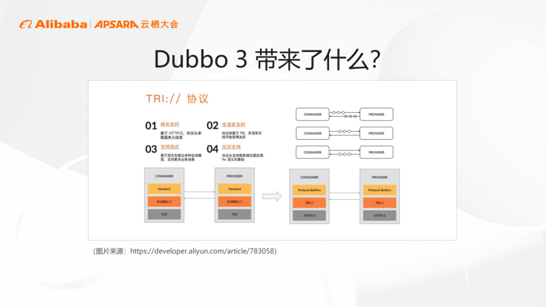 Dubbo 3推出了Triple,这是一种使用基于HTTP/2的gRPC并通过请求标头实现元数据信息传递的通信协议,也是Dubbo 3中推荐使用的服务通信协议。