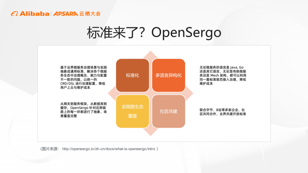 另外,新的开源产品OpenSergo也在研发中。据官方介绍,该项目力图打造一套通用的面向云原生的微服务治理标准,并且提供一系列的API和SDK实践。