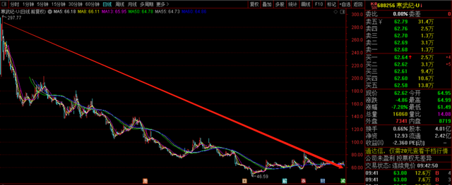 但两年来,寒武纪的股价一路下挫,连破200元、100元两大关口,跌至目前的63元,跌幅达到近80%,最高蒸发900多亿。
