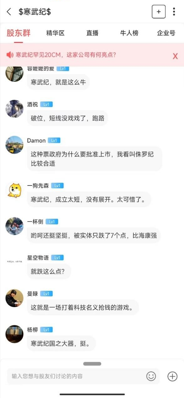 在尺度寒武纪股东群,有投资者表示,随着高管出走,机构减持,股价低迷,天使投资人套现离场,曾经的AI芯片独角兽如今加速“失宠”。