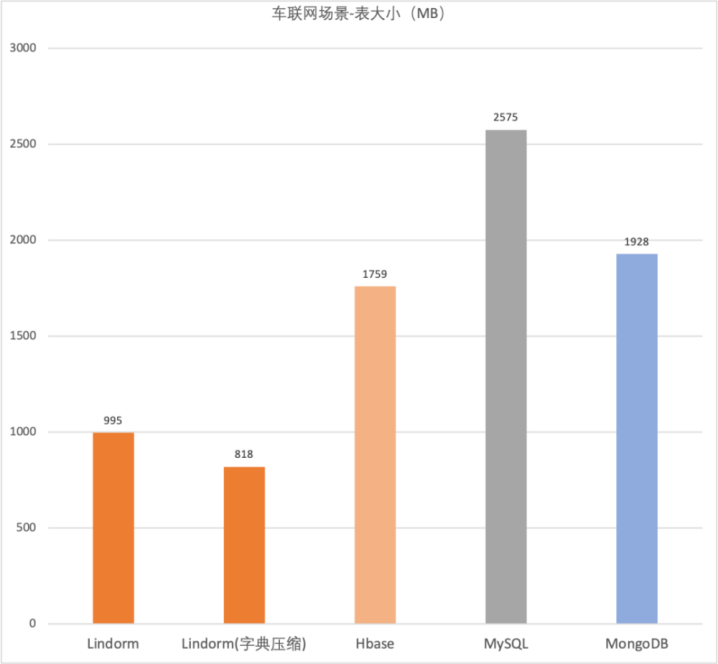 目前,在使用Lindorm的车联网用户涵盖了国内外客/货车厂商、主流汽车品牌、造车新势力、各类自动驾驶的初创企业,以及各级政府的车辆管理平台,路网信息平台等等。Lindorm不仅解决了用户的挑战,还与用户共同进步。其中Lindorm助力上海市新能源汽车平台的案例,还在今年被IDC评选为“可持续发展特别奖”。万物互联时代,为什么Lindorm成为了大多数车联网行业用户的一致选择,现在,就来带大家看下Lindorm的出众之处。Lindorm是基于LSM-Tree存储结构的NoSQL数据库,本身适合存储灵活schema和列稀疏的数据。加上LIndorm基于开源ZSTD压缩算法进行了深入优化,因此Lindorm具有超高的数据压缩比。我们选取了NGSIM数据集(Next Generation Simulation,是由美国联邦公路局发起的一项数据采集项目,被交通界学者广泛用于车辆跟驰换道等驾驶行为研究,交通流分析,微观交通模型构建,车辆运动轨迹预测),存入了Lindorm,HBase,MySQL和MongoDB中,通过对比,我们看到,Lindorm的压缩比基本上是HBase,MySQL和MongoDB的2到3倍。也就是说,车联网的海量数据存储到Lindorm中,立刻就可以收获成倍的成本节省。