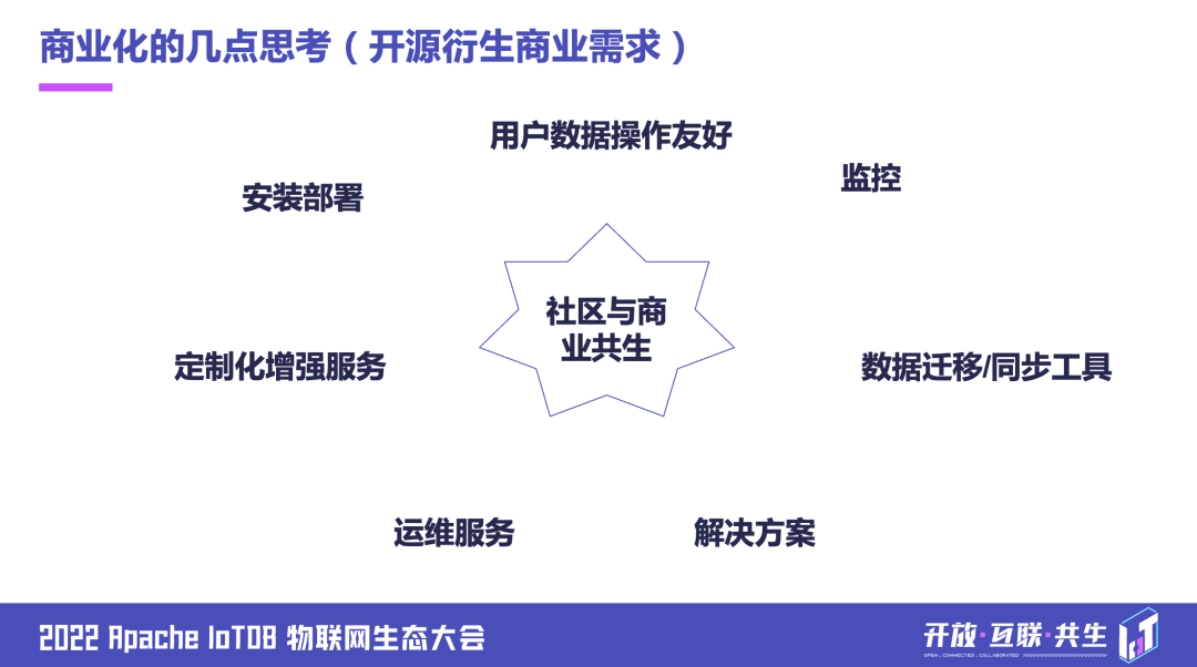 再来介绍一下我们基于Apache IoTDB 做的商业化的一些思考。为什么我们会打造自己的商业化版本,主要的还是因为有一些客户需求在推动。客户的需求主要有四点: