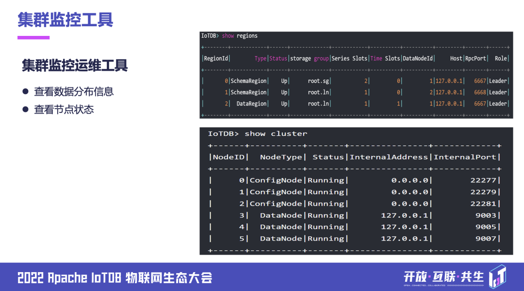 这个是我们做的一个集群监控运维运维工具,是 1.0 版本上面提供的,主要是用来查看数据的分布信息,还有节点的状态,方便于运维人员,还开发人员排查问题的时候能查看到数据的,还有节点的一些状态。