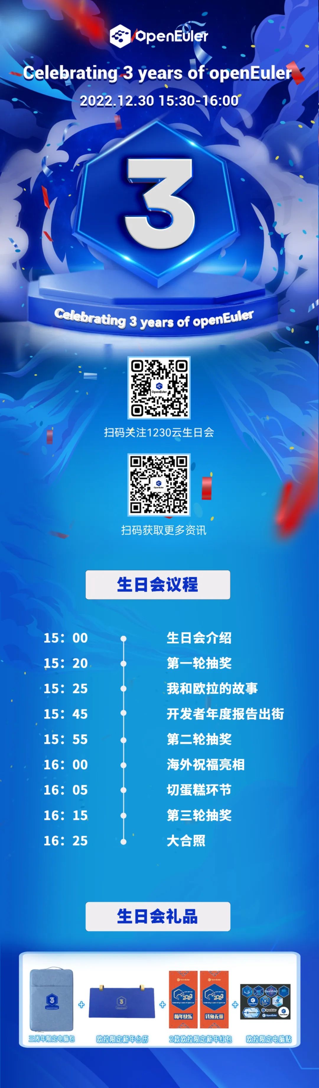 12月30日,openEuler社区将举办欧拉云生日会,这是一场关于欧拉三周年的线性叙事。如果你也是一位有理想的开发者,或许可以选择和openEuler社区一起书写属于你的故事和篇章,一同用脑力和体力点燃中国操作系统的星星之火。