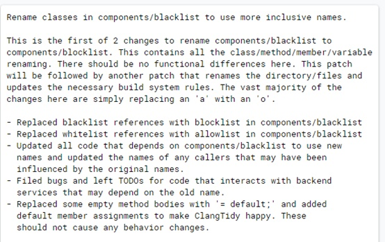 谷歌 Chrome 浏览器的程序人员给出的移除“blacklist”以及“whitelist”等用语的建议和步骤