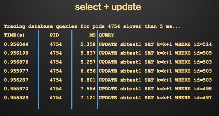 通过脚本还可以命中某种模式的慢查询, 比如说我们只关心 update 的慢查询, 那么获取 select 的结果就没有太大的意义,或者是我一定要获取某一些特定表的相关的查询,我都可以通过脚本来做。
