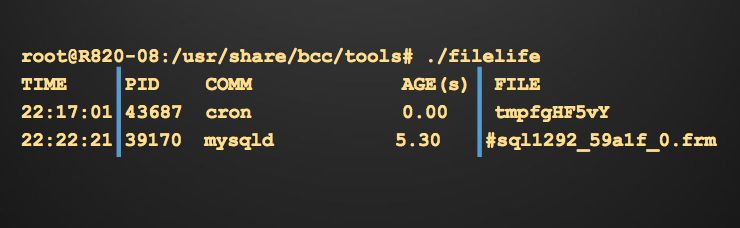 如果能做得更好,你可以抽检自己的数据库然后做环比图,比如今天和昨天同样的时间,同样的业务压力下对数据库的延迟进行分析,如果数据库的延迟峰一直在往后延,就意味着数据库的状态在变得更糟糕一些。这是 bcc 第一个能做的事情,需要再次强调的是它开箱即用直接下载过来就可以使用。
