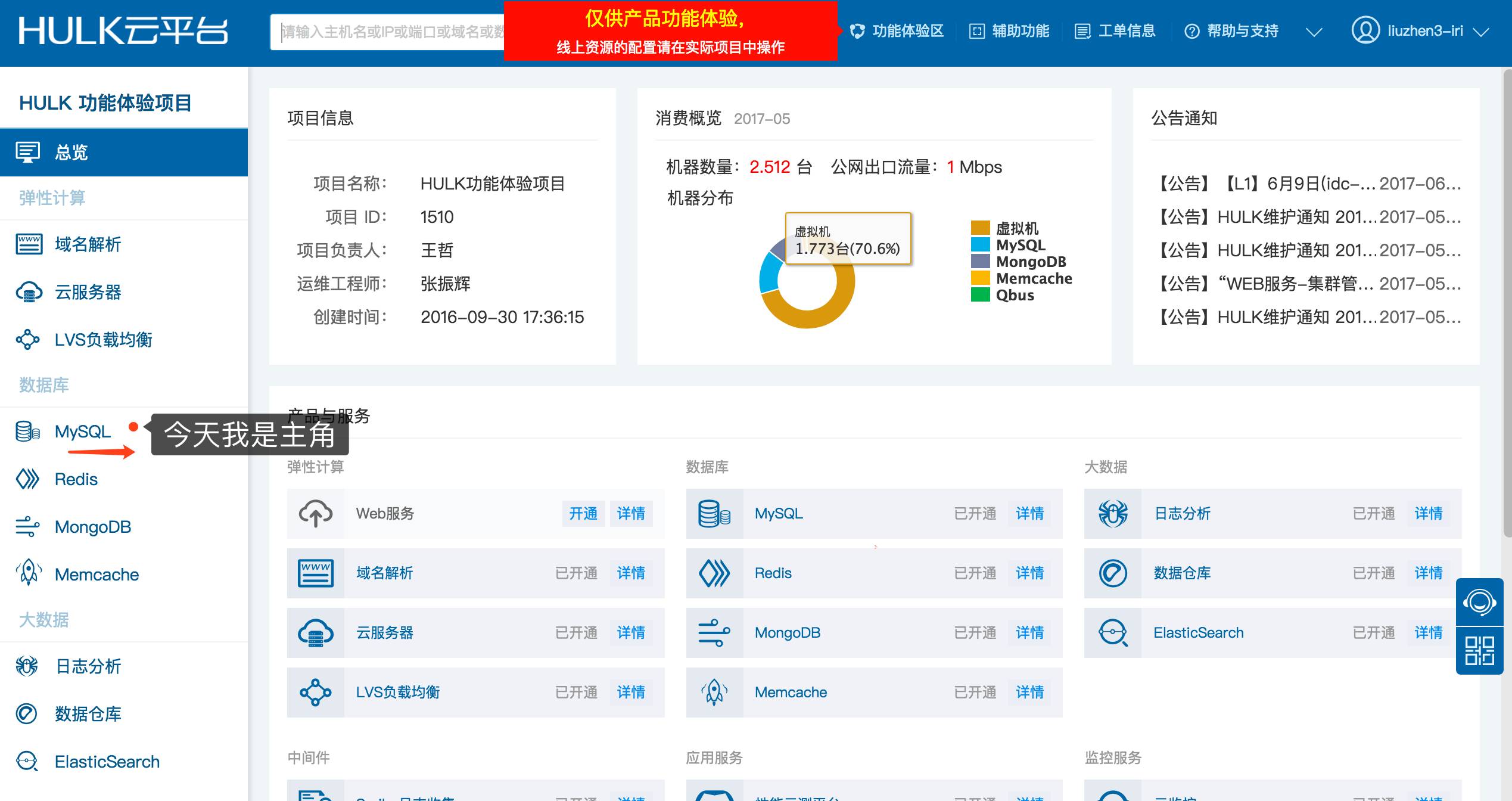 说起 HULK 私有云平台大家有参加过之前我们同事分享的应该听过,360HULK 私有云平台是奇虎 360 公司内部专属私有云平台,平台涉及云计算、数据库、大数据、监控等众多技术领域。今天要分享的 MySQL 服务就是 HULK 数据库服务中的一种。