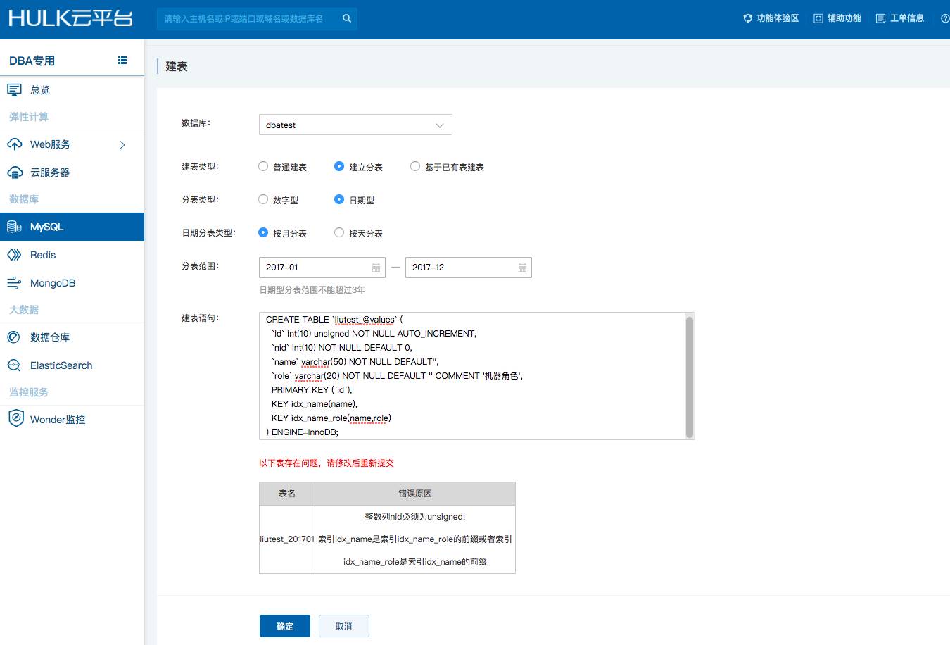 说完数据库结构和故障切换,按照正常操作流程业务们该建表、改表、授权、查看监控等操作了,其中授权监控这里就不多赘述了。因为我们平台默认给业务方只有对数据的增删改查权限,所以建表改表需要业务来 HULK 平台操作,针对建表,我们根据运维经验和踩坑实践,总结了 16 个检查项,这里贴出来和大家分享下。