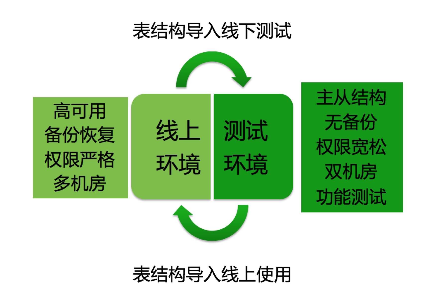 为了方便业务测试,我们在平台上提供了测试环境,并且将测试环境和线上环境打通,业务可以直接将库表结构在线上和测试之间互导。方便业务测试和上线操作。