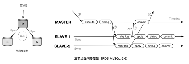 三节点目前采用的是数据库协议层的多副本数据冗余,在 AliSQL 内核中引入 Raft 协议,借助 MySQL Semi-sync Replication 实现日志多副本同步复制,来确保数据的强一致性,提供金融级的可靠性。多个节点之间的数据是实时同步的,每个节点的数据都是全量的。